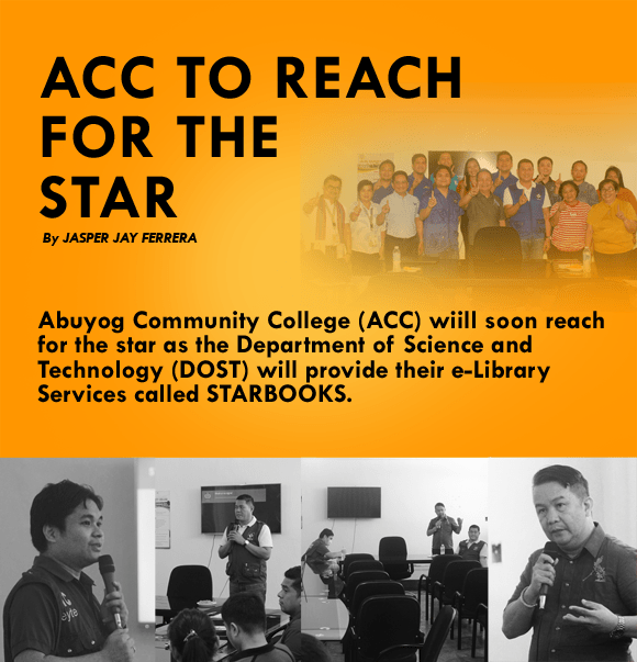 Abuyog Community College (ACC) will soon reach for the star as the Department of Science and Technology (DOST) will provide their e-Library Services called ๐ฆ๐ง๐๐ฅ๐๐ข๐ข๐๐ฆ.