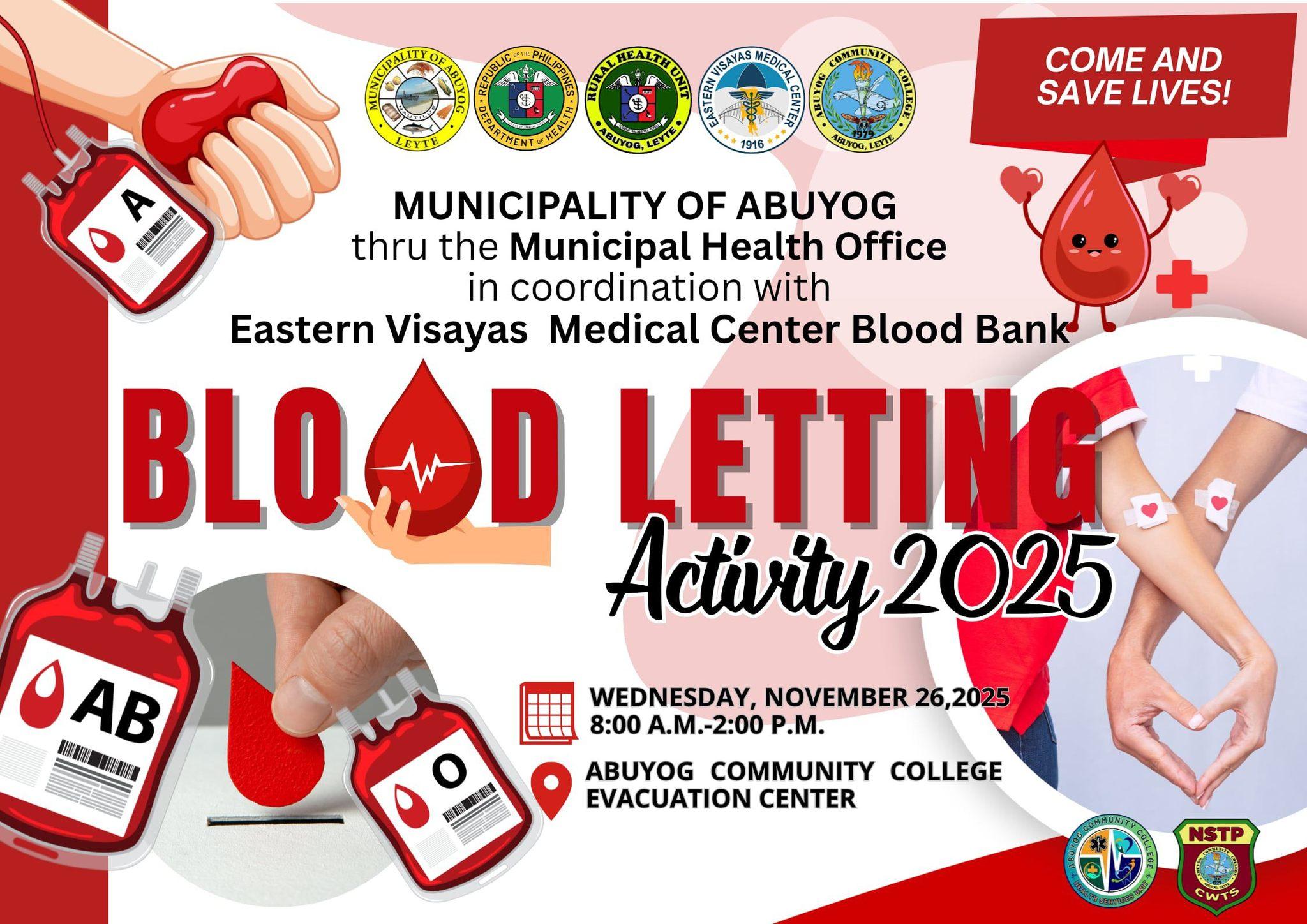ACC readies for Blood Letting 2025 Abuyog Community College is once again turning compassion into action as the ACC Medical Unit calls on all students, faculty, and staff to take part in its Blood Letting Activity on November 26, 2025, from 8:00 AM to 2:00 PM at the ACC Evacuation Gym. With the theme “Donate continue reading : ACC readies for Blood Letting 2025