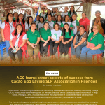 - ACC learns sweet secrets of success from Cacao Egg Laying SLP Association in Hilongos by Charlies OrtizACC learns sweet secrets of success from Cacao Egg Laying SLP Association in Hilongos By Charlies Mae Ortiz In pursuit of strengthening livelihood and community development initiatives, Abuyog Community College (ACC) conducted a benchmarking visit continue reading : ACC learns sweet secrets of success from Cacao Egg Laying SLP Association in Hilongos by Charlies Ortiz